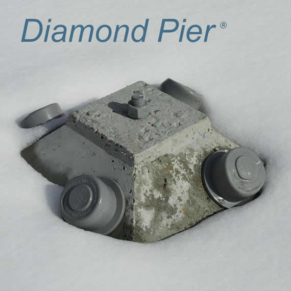 The Diamond Pier® Foundation System is a pre-engineered footing system that uses pin pile technology. The system was designed to replace conventional concrete pier footing typically used in construction of decks, gazebos, screen porches and similar type projects. Using large steels pins that are pile-driven through a high-strength precast concrete head, Diamond Pier allows builders to start framing more quickly.