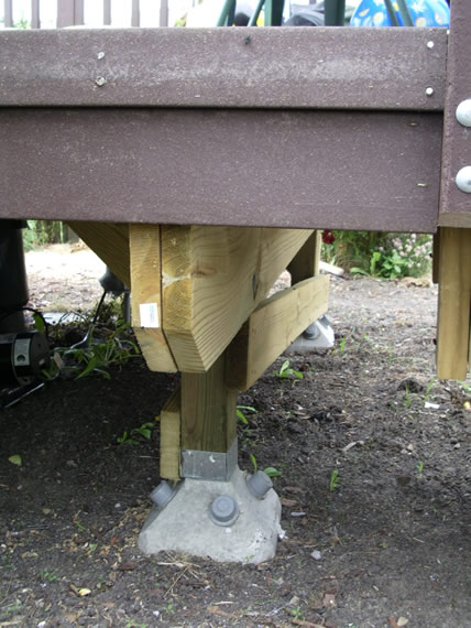 Diamond Pier load capacities are greater than or equal to a standard concrete pier footing size. There is no need to change design of post layouts, just follow the load chart and installation instructions, substituting Diamond Piers where conventional footings are planned.