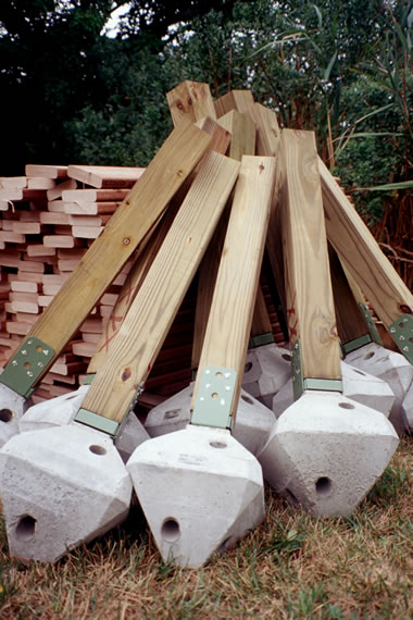 The heavy-duty foundation system saves time and scheduling headaches. With Diamond Pier, builders set the product, drive the pins, connect the bracket and start building. No more digging holes, pouring concrete or repairing landscape. Diamond Pier features a low environmental impact and can be used in wetland and conservation areas.