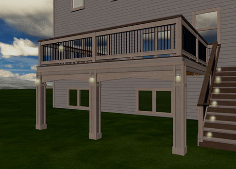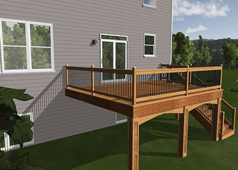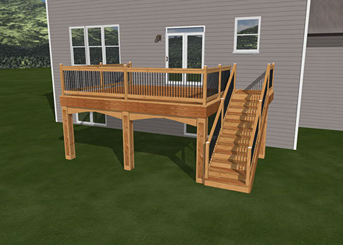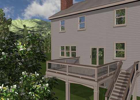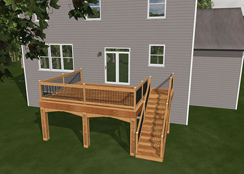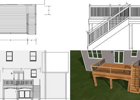 Once I have your photos of your home, I will design the deck in 3D full-color. I will send a few shots from different angles so you can see just what the deck may look like. At that time we can go over all the details you want such as colors, decking, and railing.